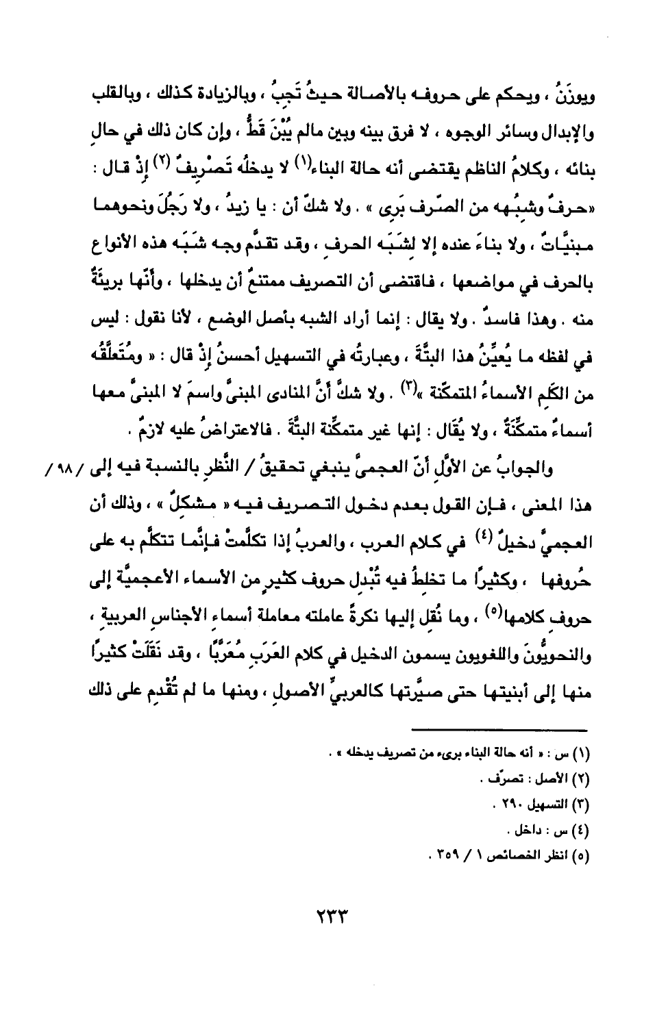 منها إلى أبنيتها حتى صيرتها كالعربي الأصول ومنها ما لم تقدم على ذلك