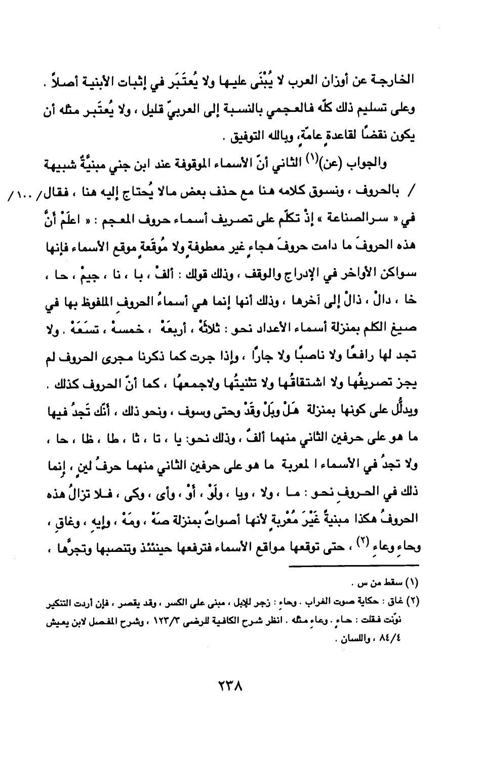 والجواب عن الثاني أن الأسماء الموقوفة عند ابن جني مبنية شبيهة