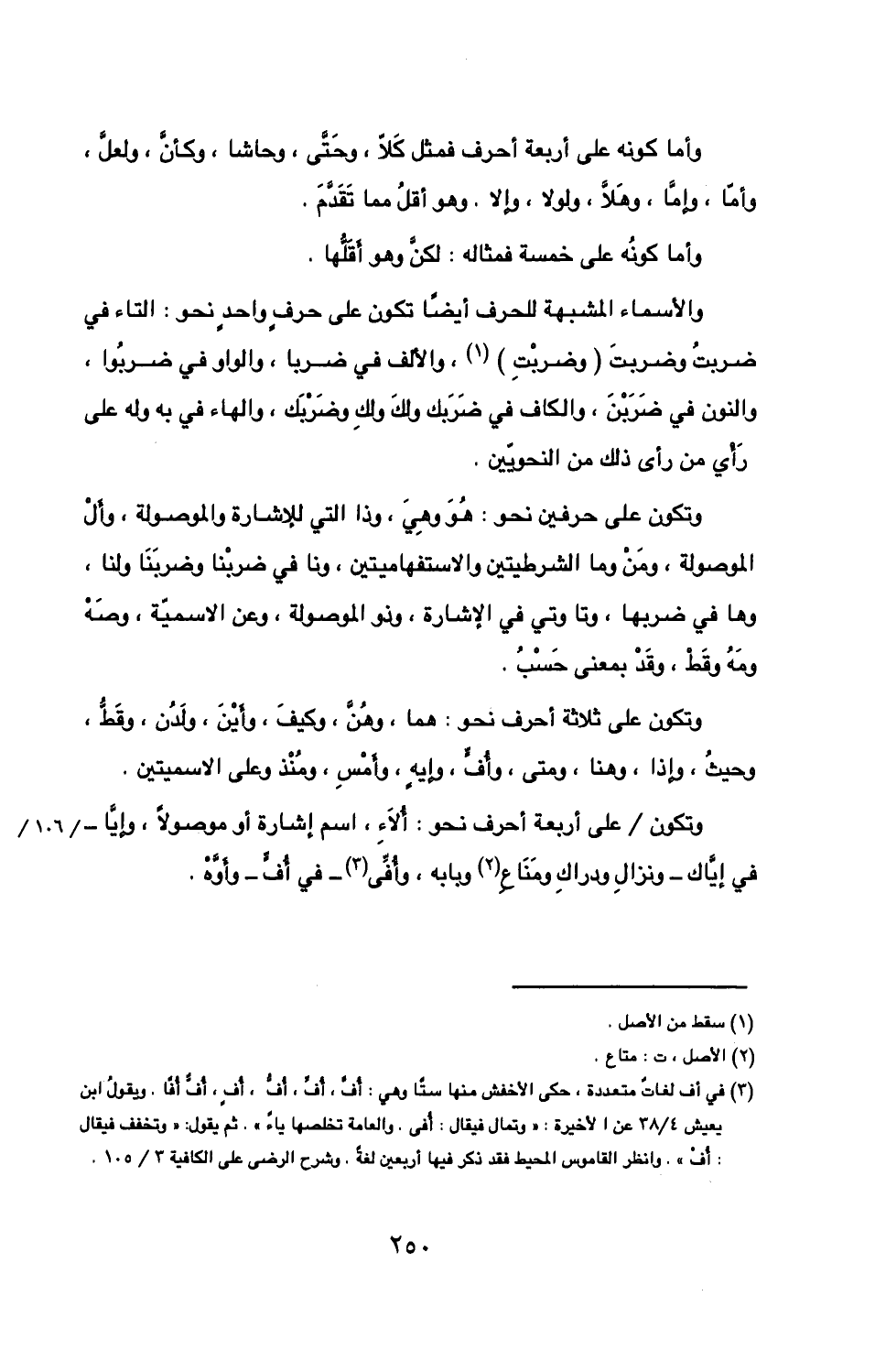 وتكون على حرفين نحو هو وهي وذا التي للإشارة والموصولة وأل