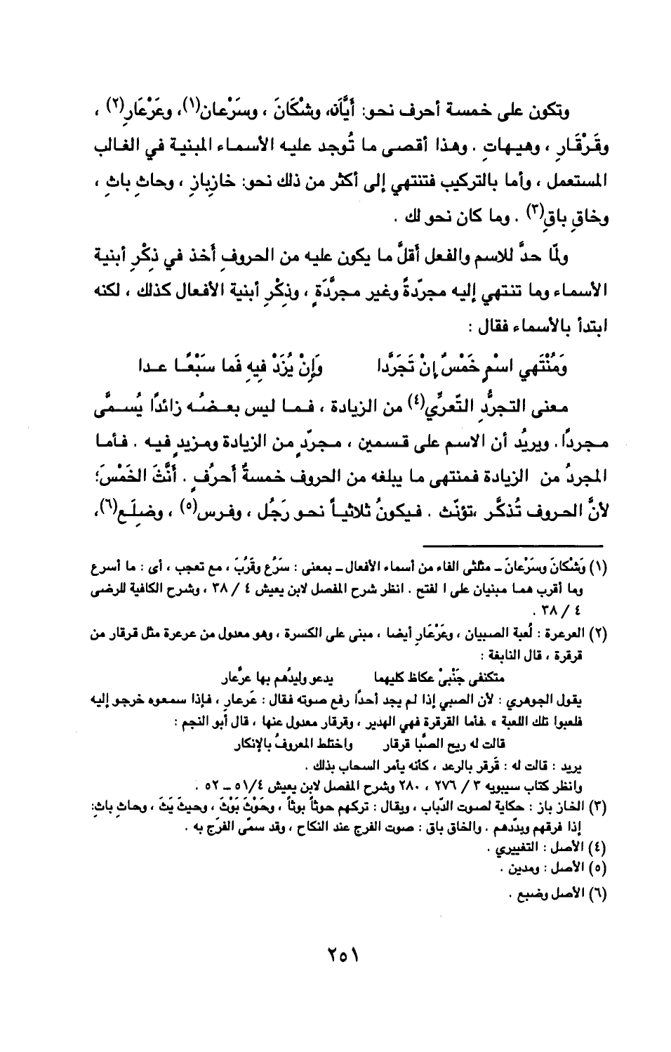 الأسماء وما تنتهي إليه مجردة وغير مجردة وذر أبنية الأفعال كذلك لكنه