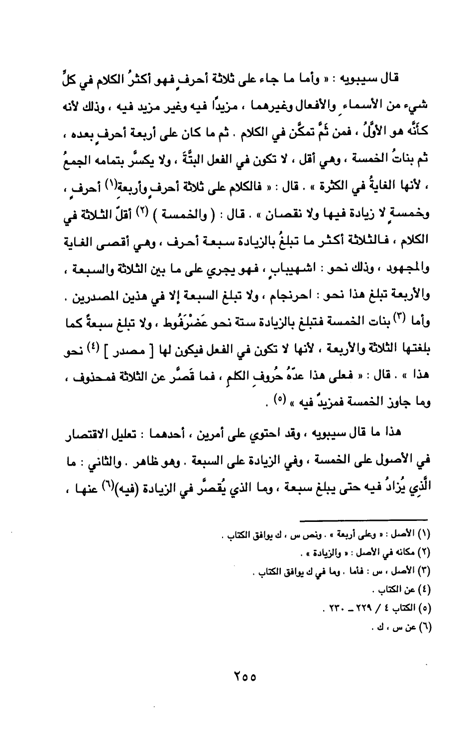قال سيبويه «وأما ما جاء على ثلاثة أحرف فهو أكثر الكلام في كل