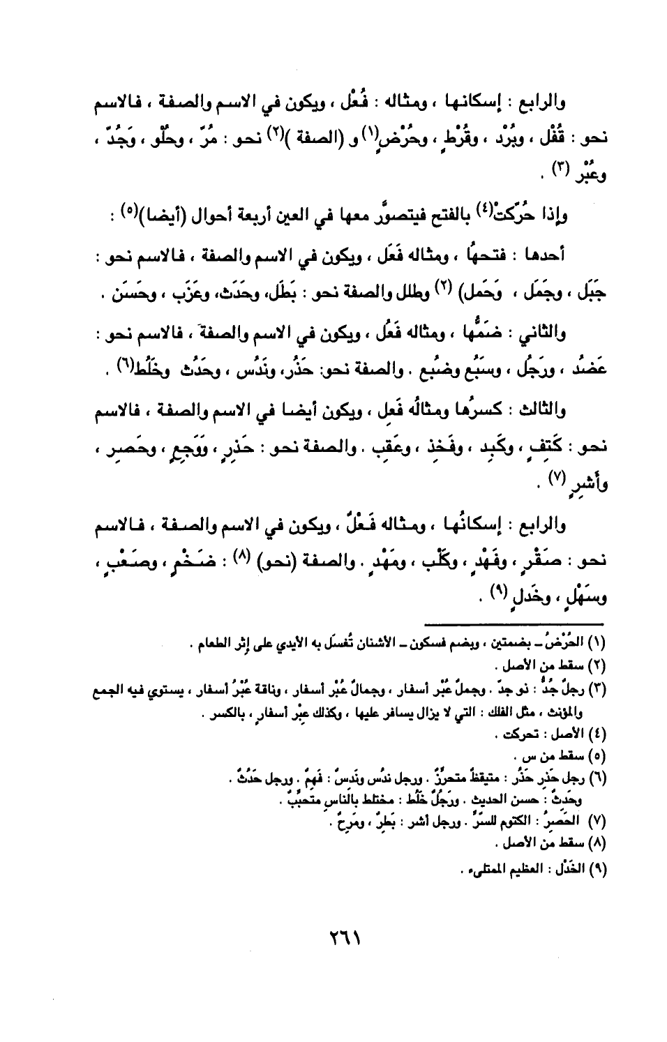 عضد ورجل وسبع وضبع والصفة نحو حذر وندس وحدث وخلط