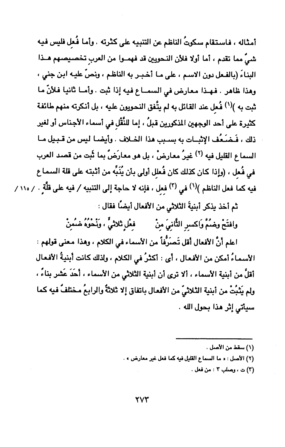 ولم يثبت من أبنية الثلاثي من الأفعال باتفاق إلا ثلاثة والرابع مختلف فيه كما