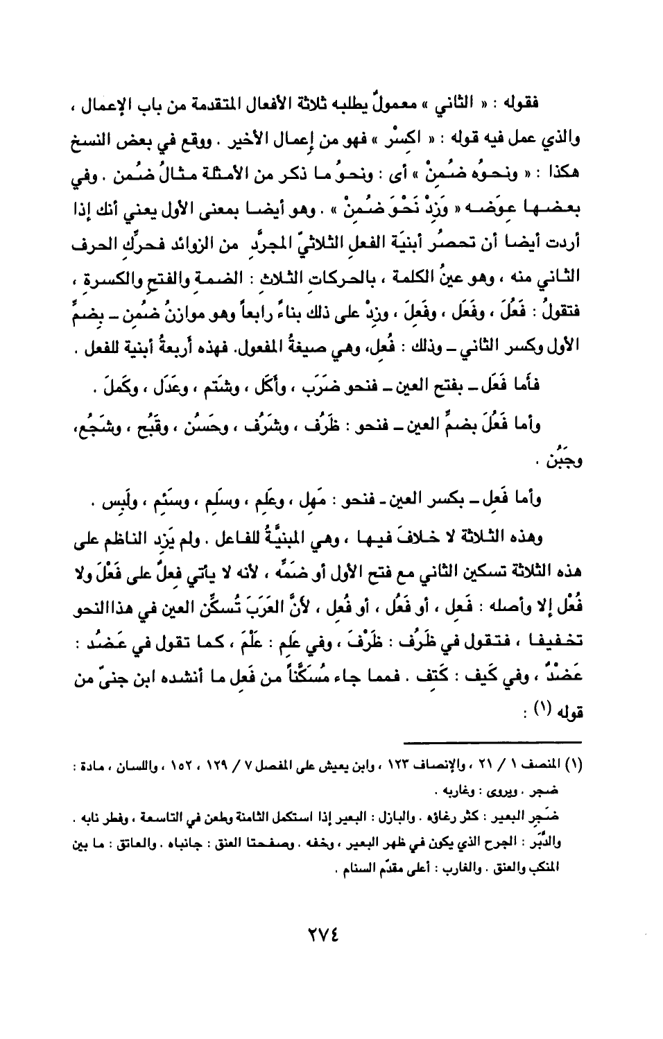 وأما فَعُل بضم العين فنحو ظَرُف وشَرُف وحسن وقبح وشجع
