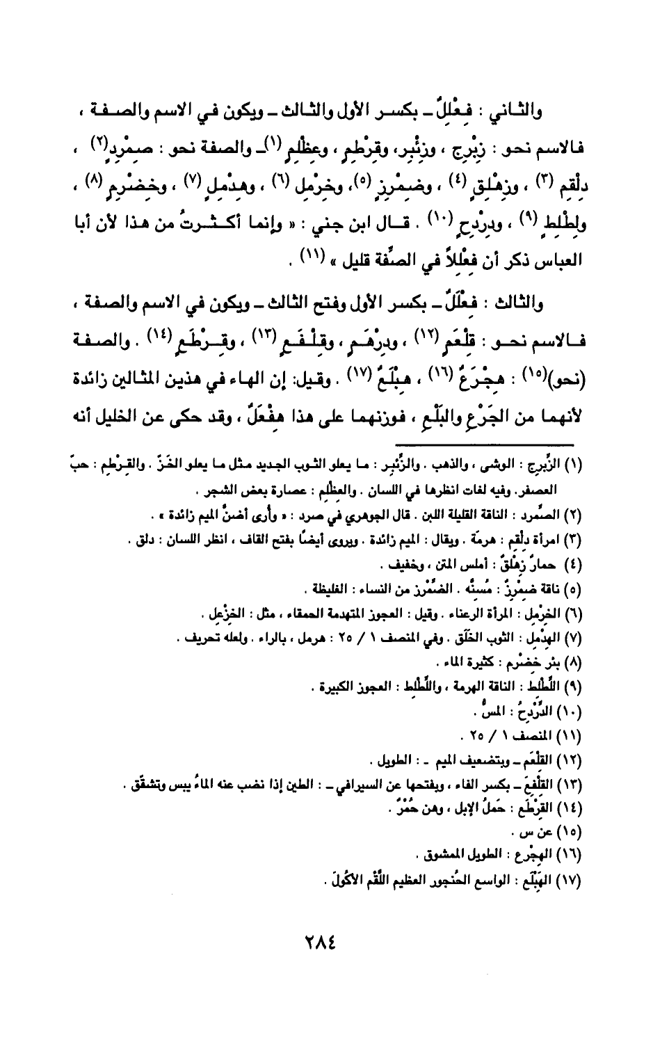 ولطلط ودردح. قال ابن جني «وإنما أكثرتُ من هذا لأن