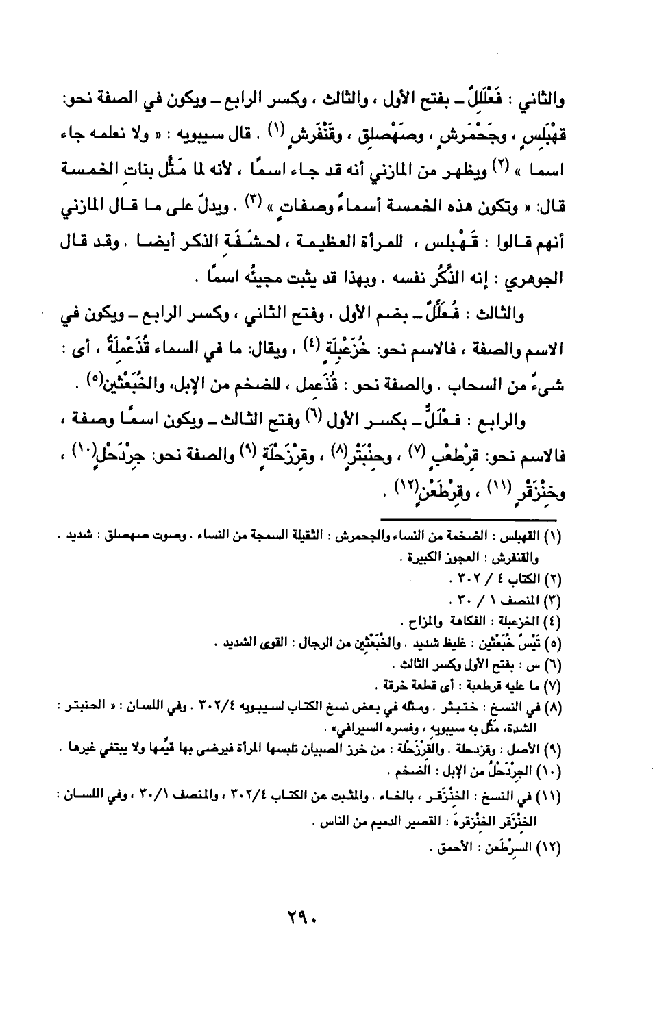 قهْبَلِس وجحمرش وصهصلق وقنفرش قال سيبويه «ولا نعلمه جاء