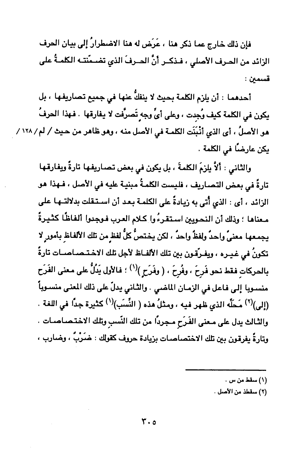 والثاني ألا يلزم الكلمة بل يكون في بعض تصاريفها تارة ويفارقها