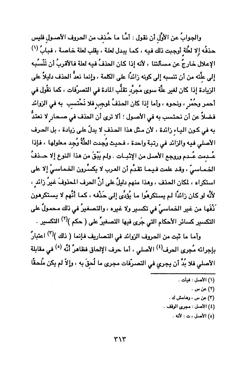 والجواب عن الأول أن نقول أما ما حذف من الحروف الأصول فليس