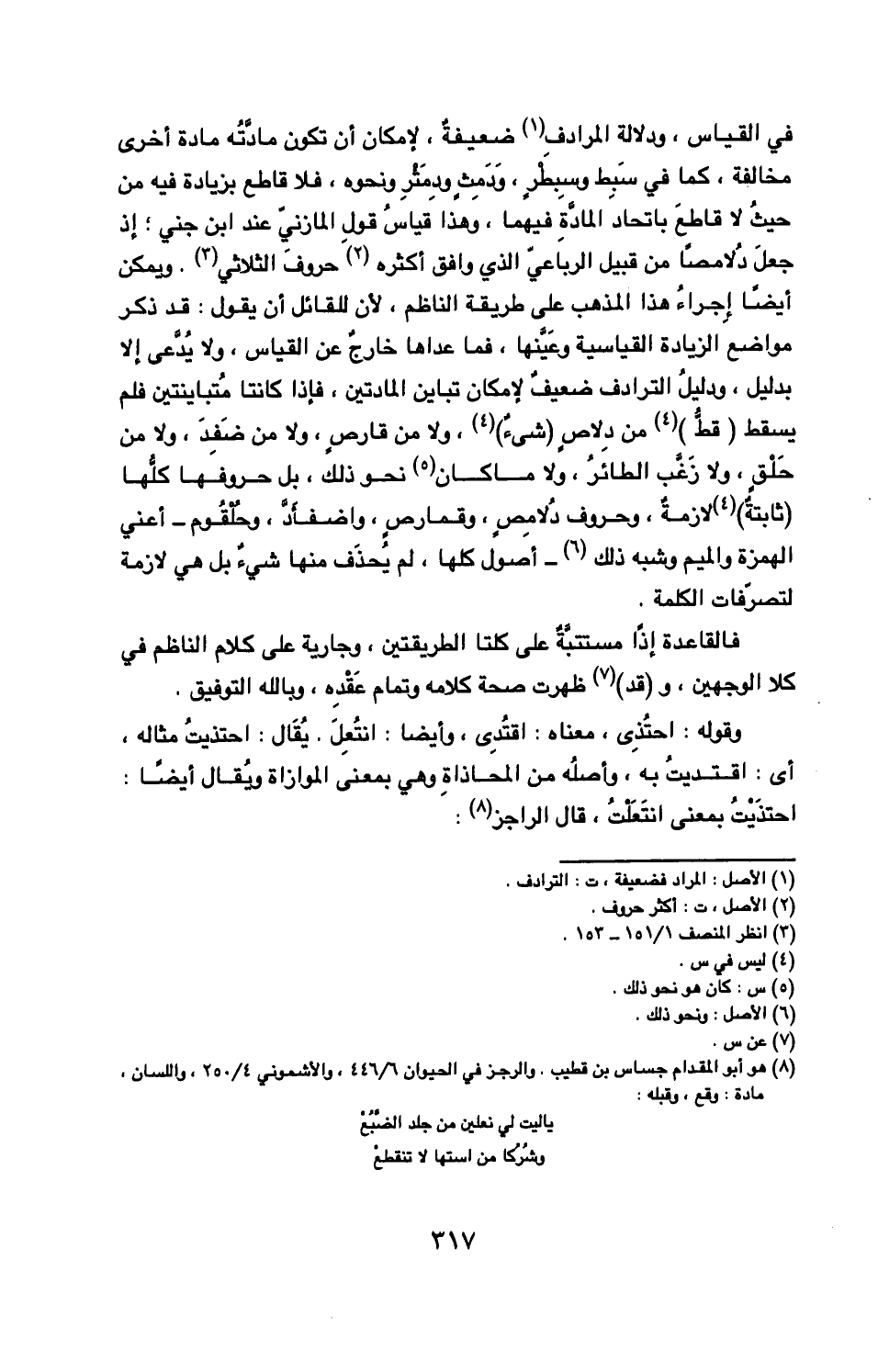 حيث لا قاطع باتحاد المادة فيهما وهذا قياس قول المازني عن ابن جني إذ