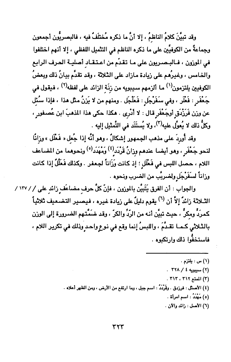 عن وزن فرزدق أو جعفر قال لا أدري هكذا حكى هذا المذهب ابن عصفور