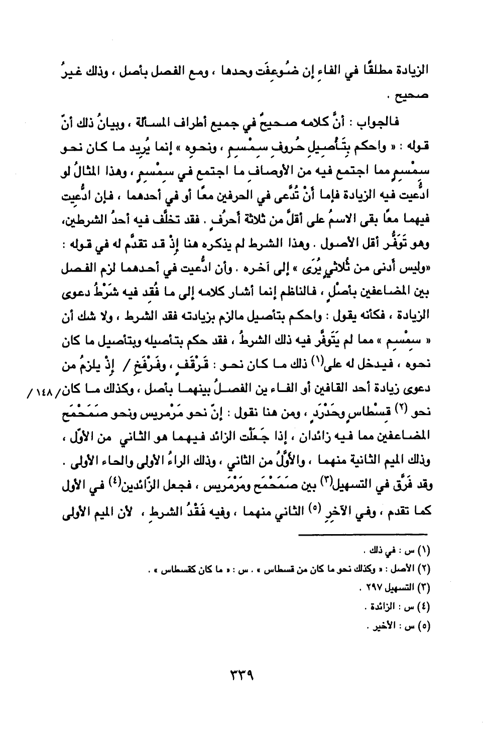 وقد فرق في التسهيل بين صمحمح ومرمريس فجعل الزائدين في الأول