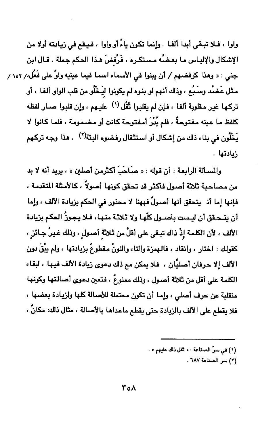 الكلمة على أقل من ثلاثة أصول وذلك ممنوع فتعين دعوى أصالتها وكونها