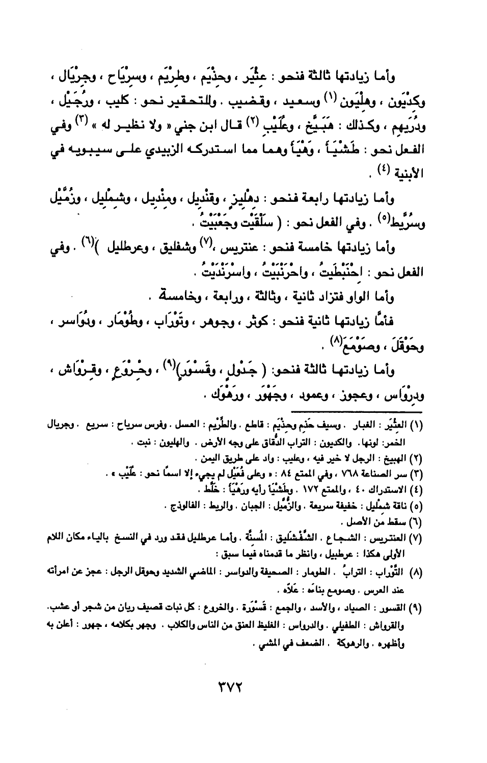 وأما زيادتها خامسة فنحو عنتريس وشفليق وعرطليل وفي