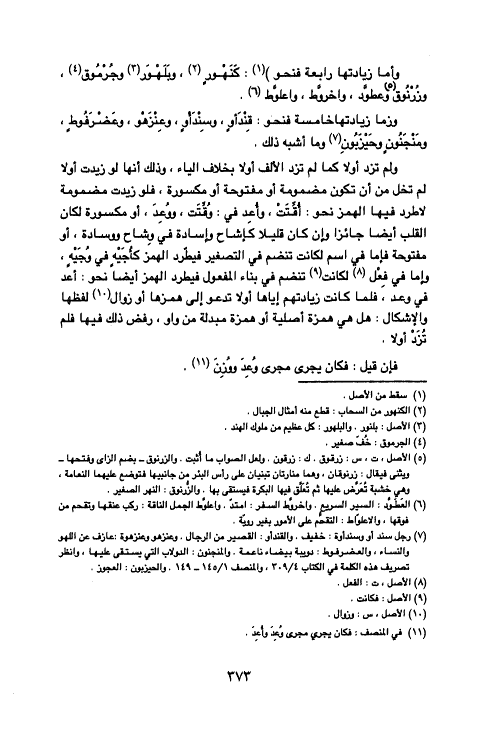 وأما* زيادتها خامسة فنحو قندأو وسندأو وعنزهو وعضرفوط
