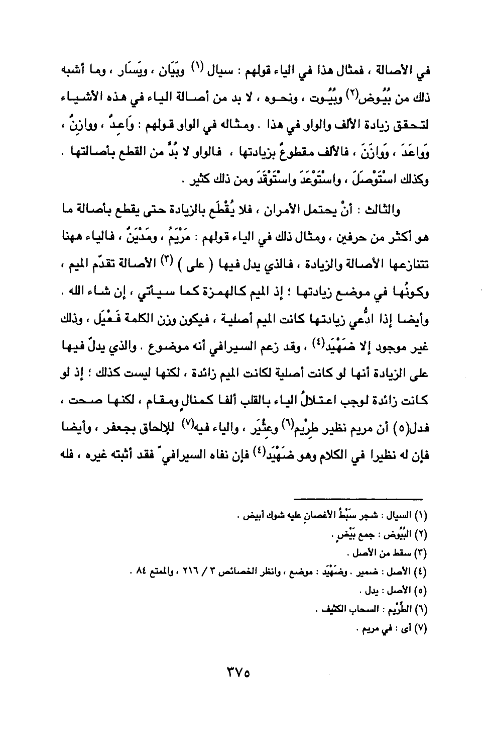 في الأصالة فمثال هذا في الياء قولهم سيال وبيان ويسار وما أشبه