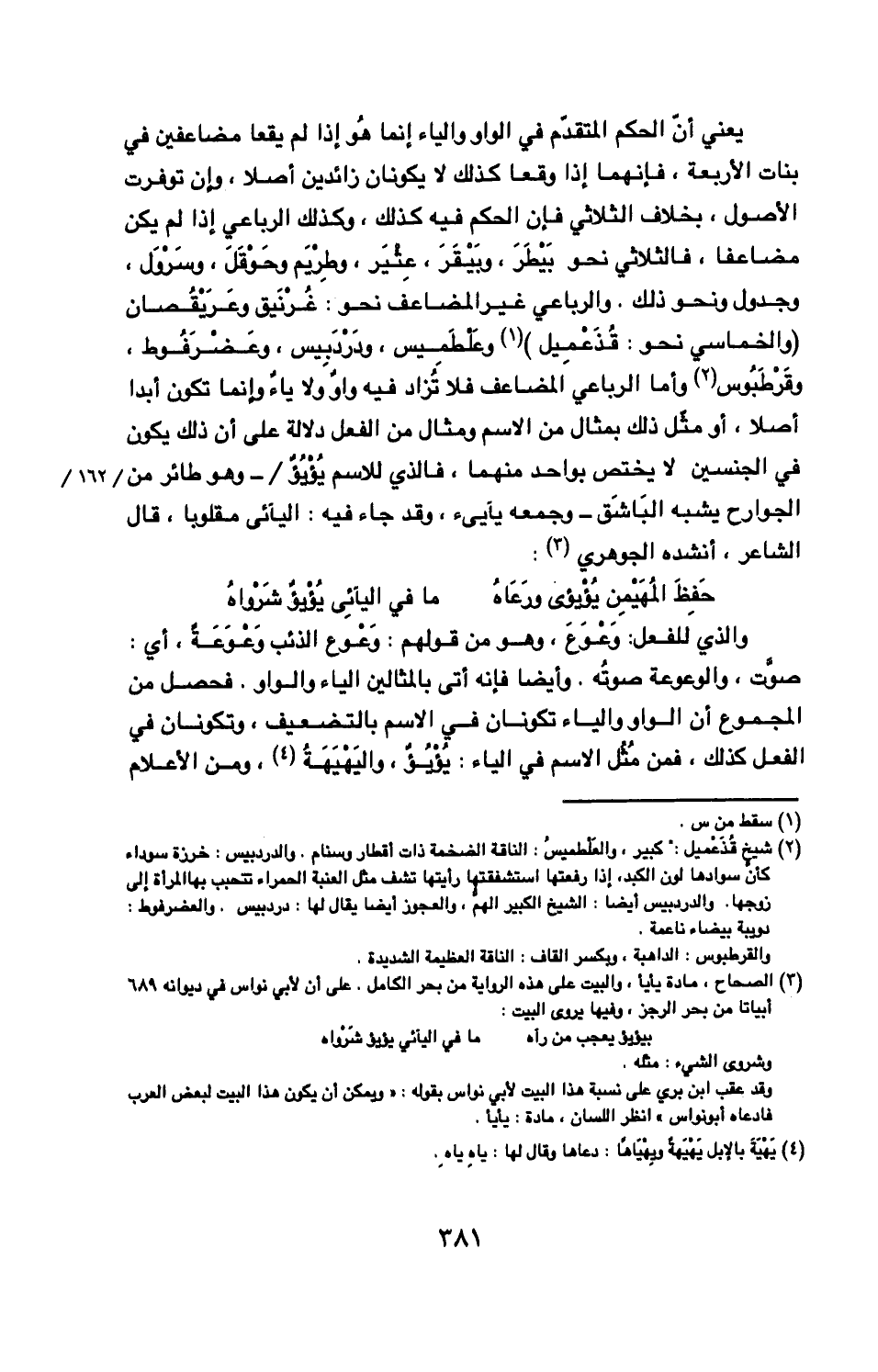 مضاعفا فالثلاثي نحو بيطر وبيقر عثير* وطريم وحوقل وسرول