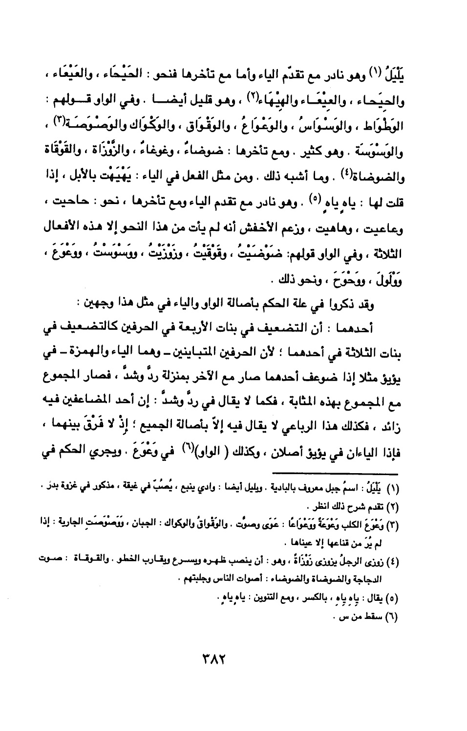 يليل وهو نادر مع تقدم الياء وأما مع تأخرها فنحو الحيحاء والعيعاء