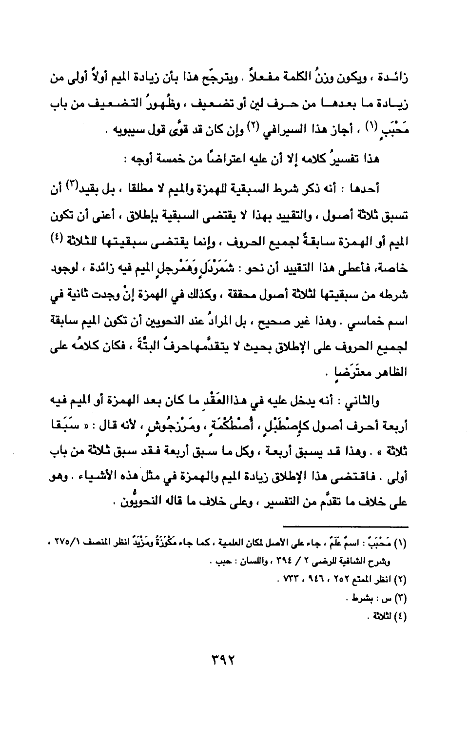 أربعة أحرف أصول كإصطبل أصطكمة ومرزجوش لأنه قال «سَبَقَا ...