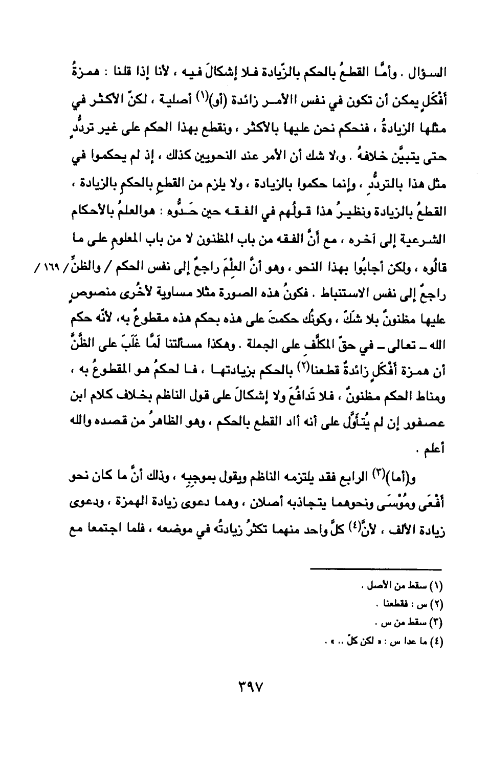 السؤال وأما القطع بالحكم بالزيادة فلا إشكال فيه لأنا إذا قلنا همزة
