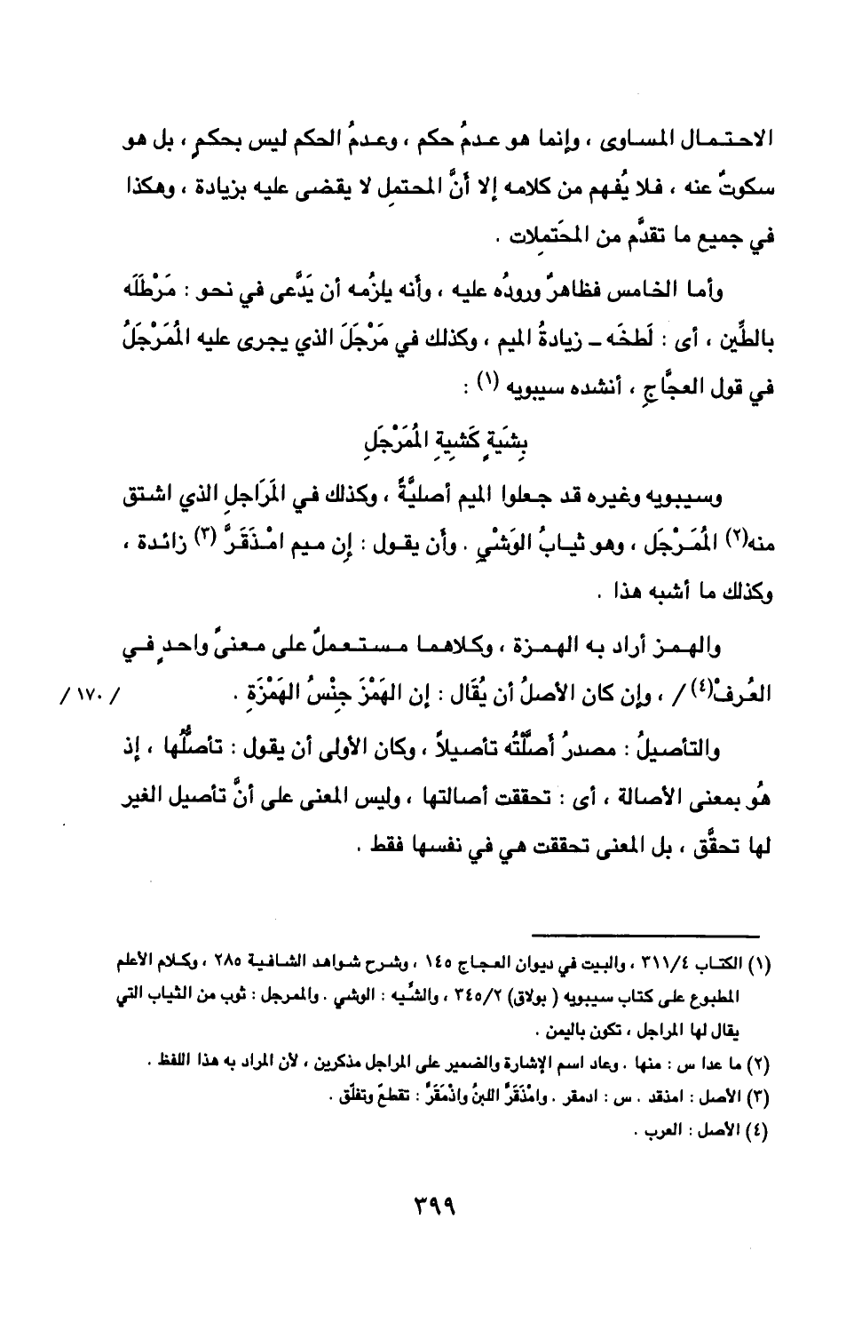 وسيبويه وغيره قد جعلوا الميم أصلية وكذلك في المراجل الذي اشتق