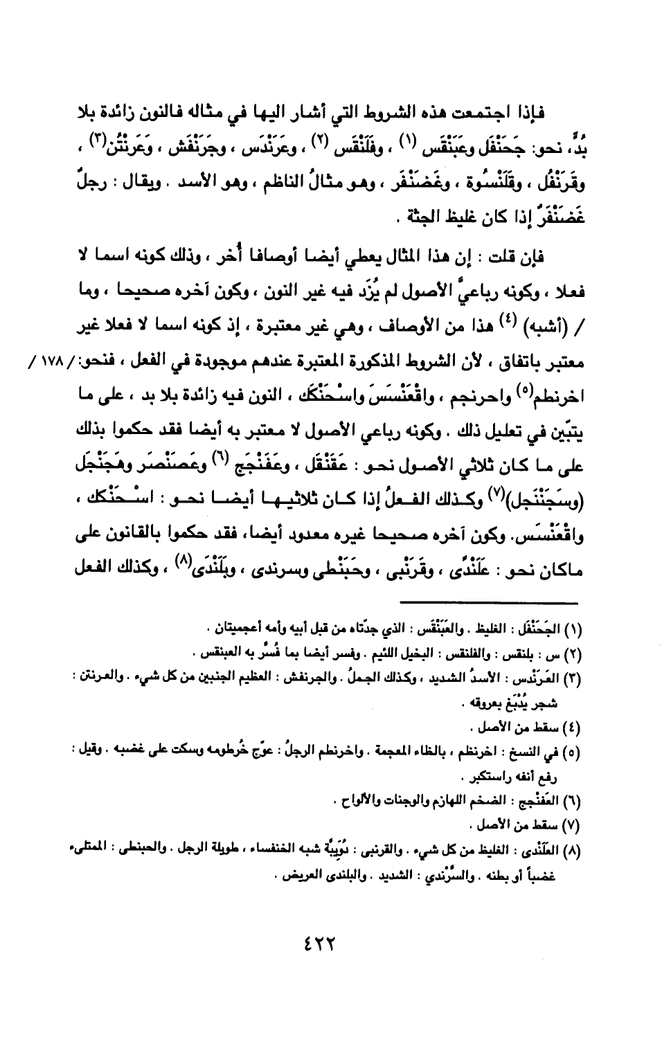 بد نحو جحنْفَل وعبنْقس وفلنقس وعرندس وجرنفش وعرنتُن