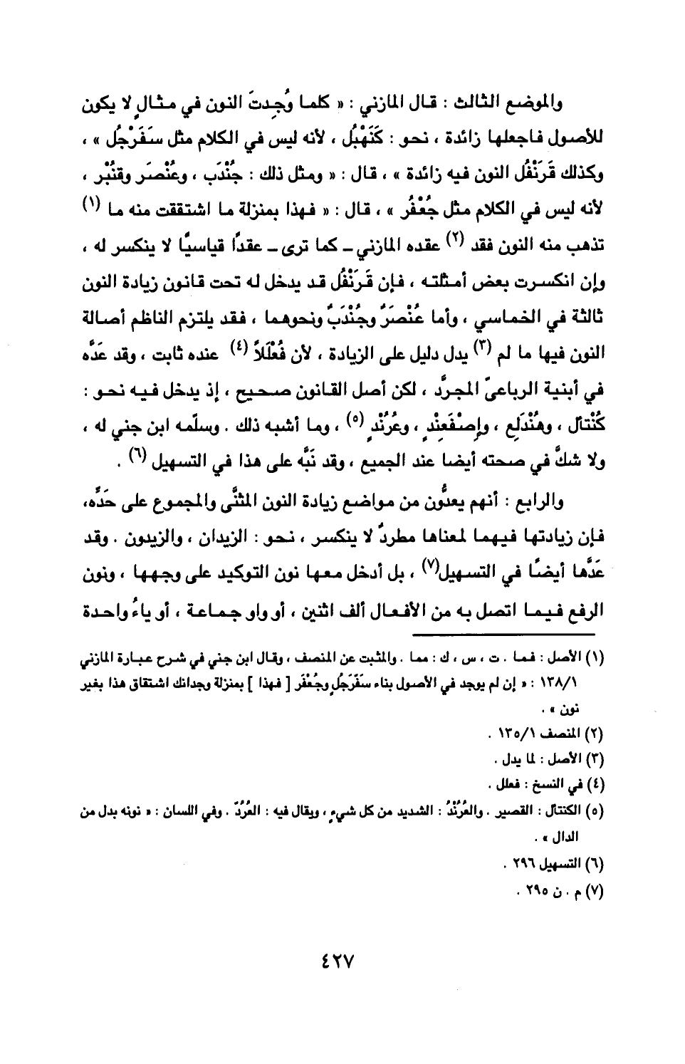 والموضع الثالث قال المازني «كلما وُجدت النون في مثال لا يكون