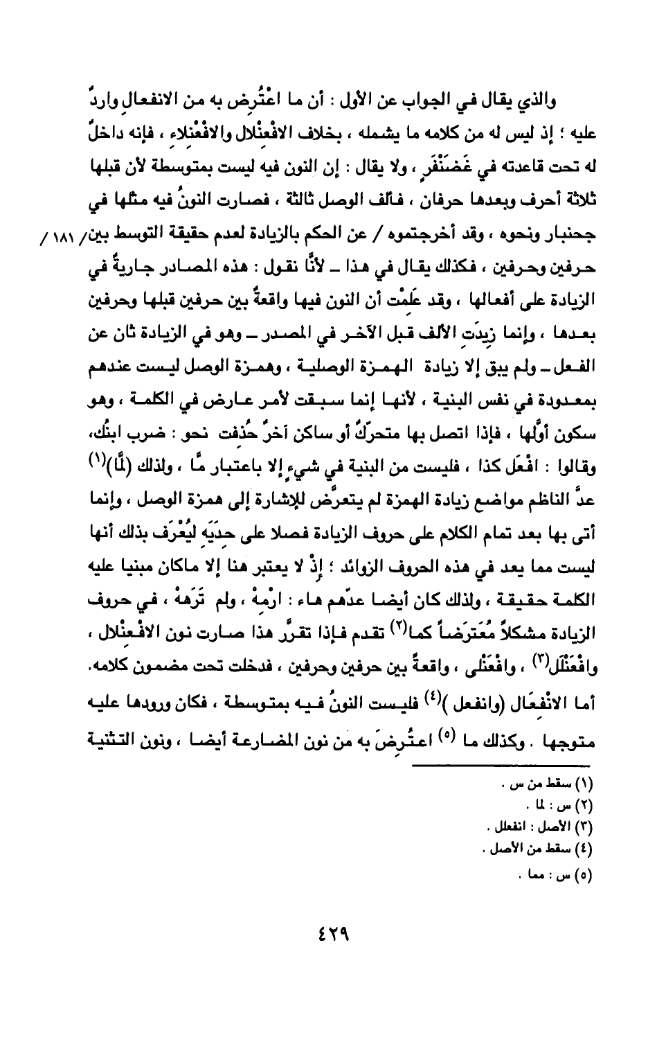 الزيادة مشكلا مُعترَضا كما تقدم فإذا تقرر هذا صارت نون الافعنلال