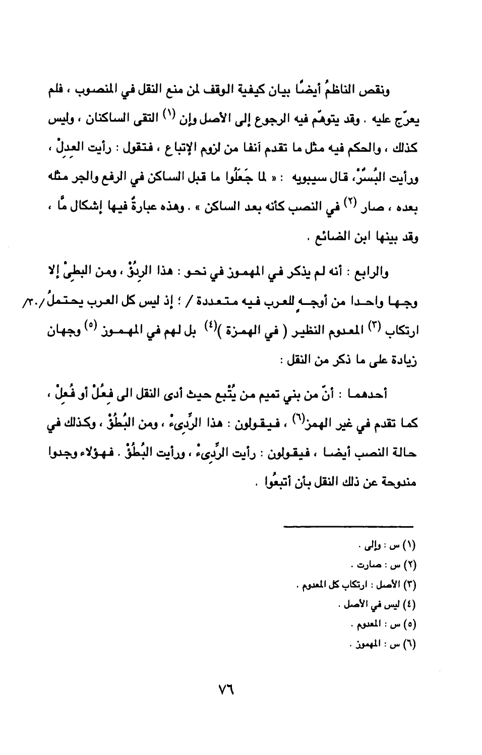 ونقص الناظمُ أيضا بيان كيفية الوقف لمن منع النقل في المنصوب فلم