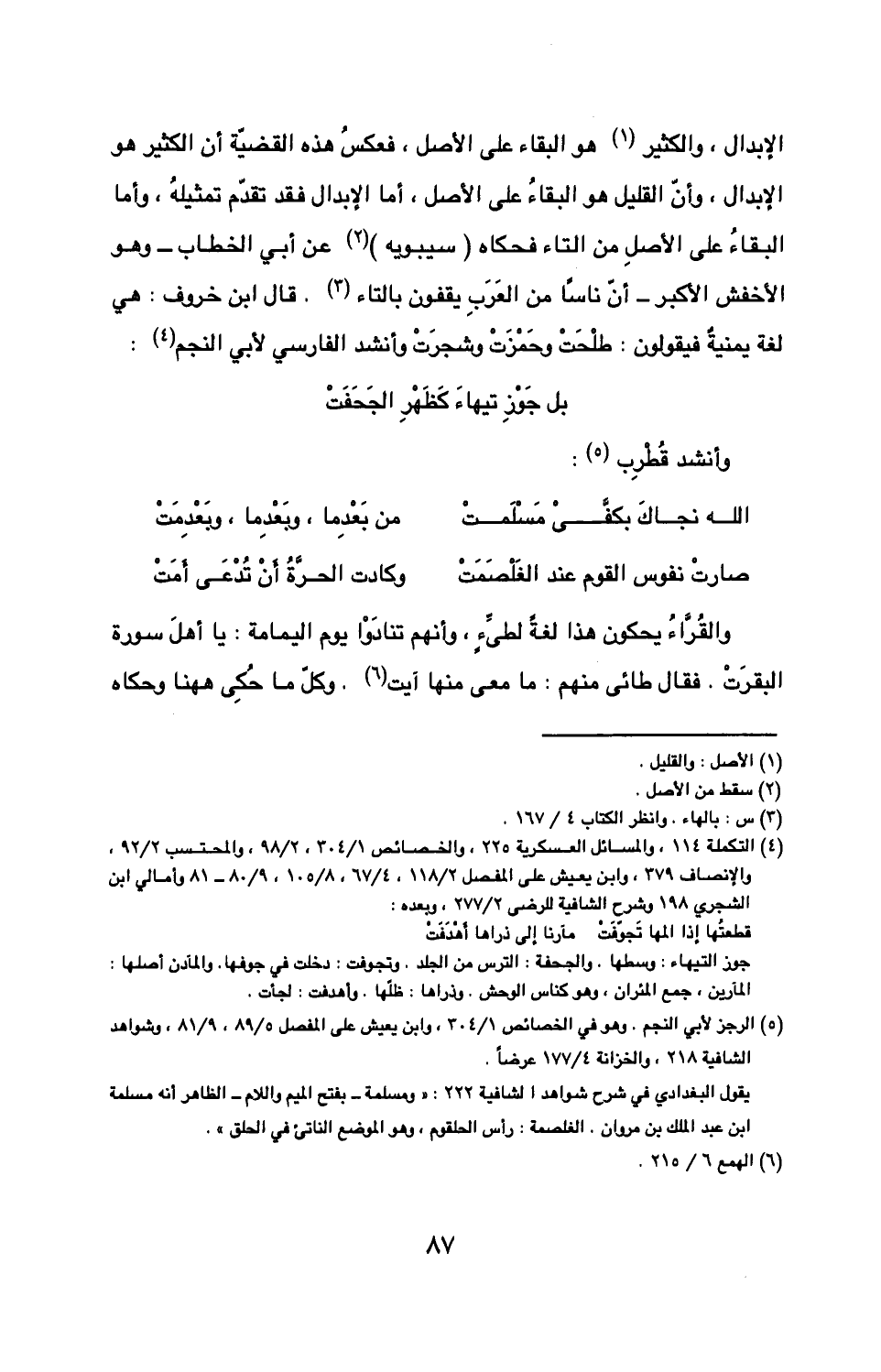 الإبدال وأنّ القليل هو البقاء على الأصل أما الإبدال فقد تقدّم تمثيلهُ وأما