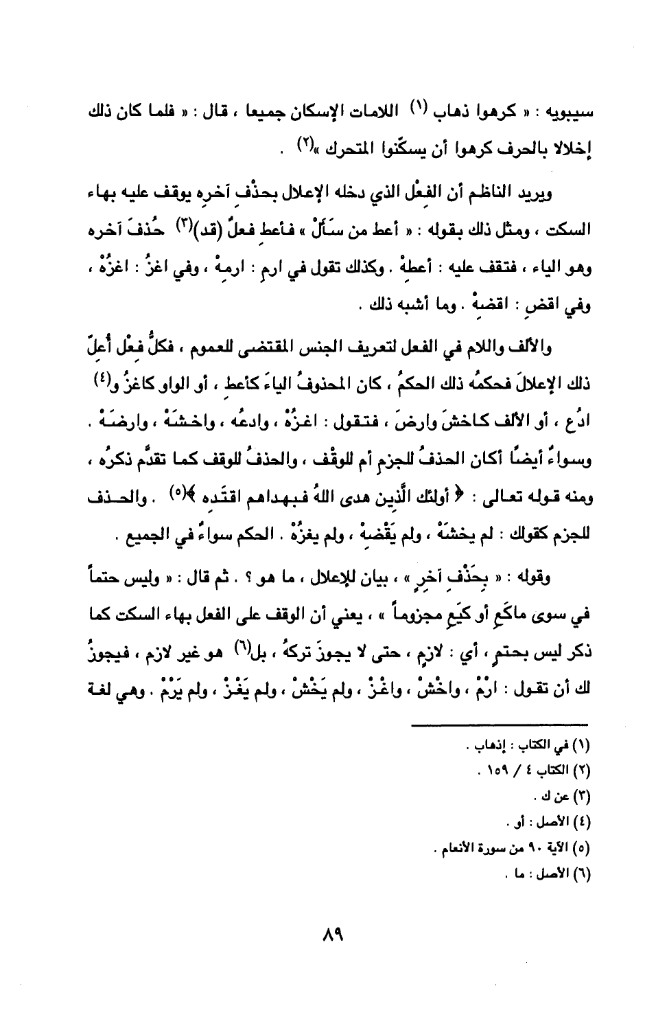 سيبويه «كرهوا ذهاب اللامات الإسكان** جميعا» قال «فلما كان ذلك
