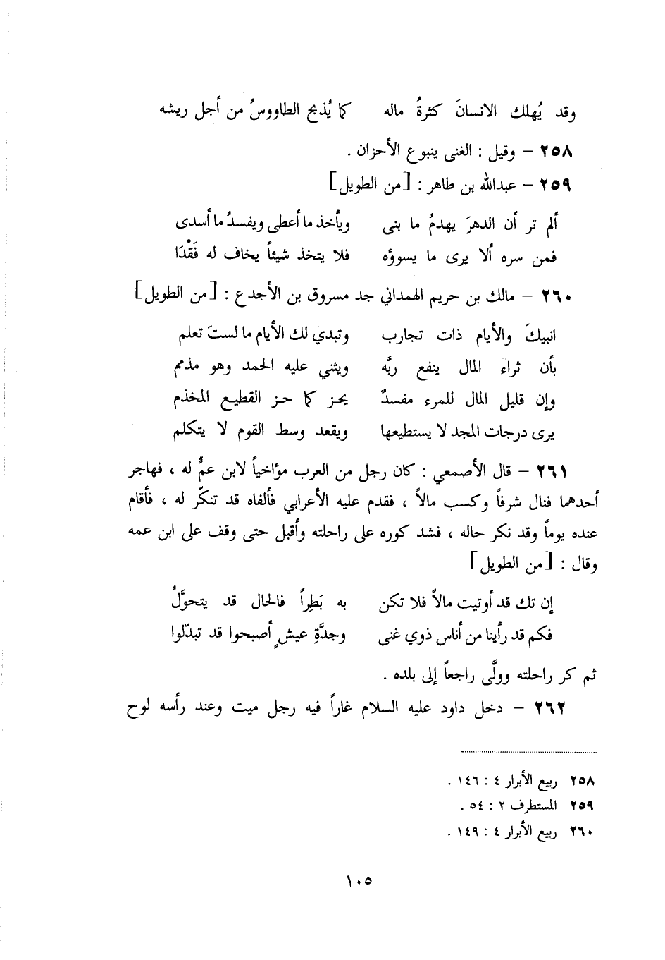 «258» - وقيل: الغنى ينبوع الأحزان.