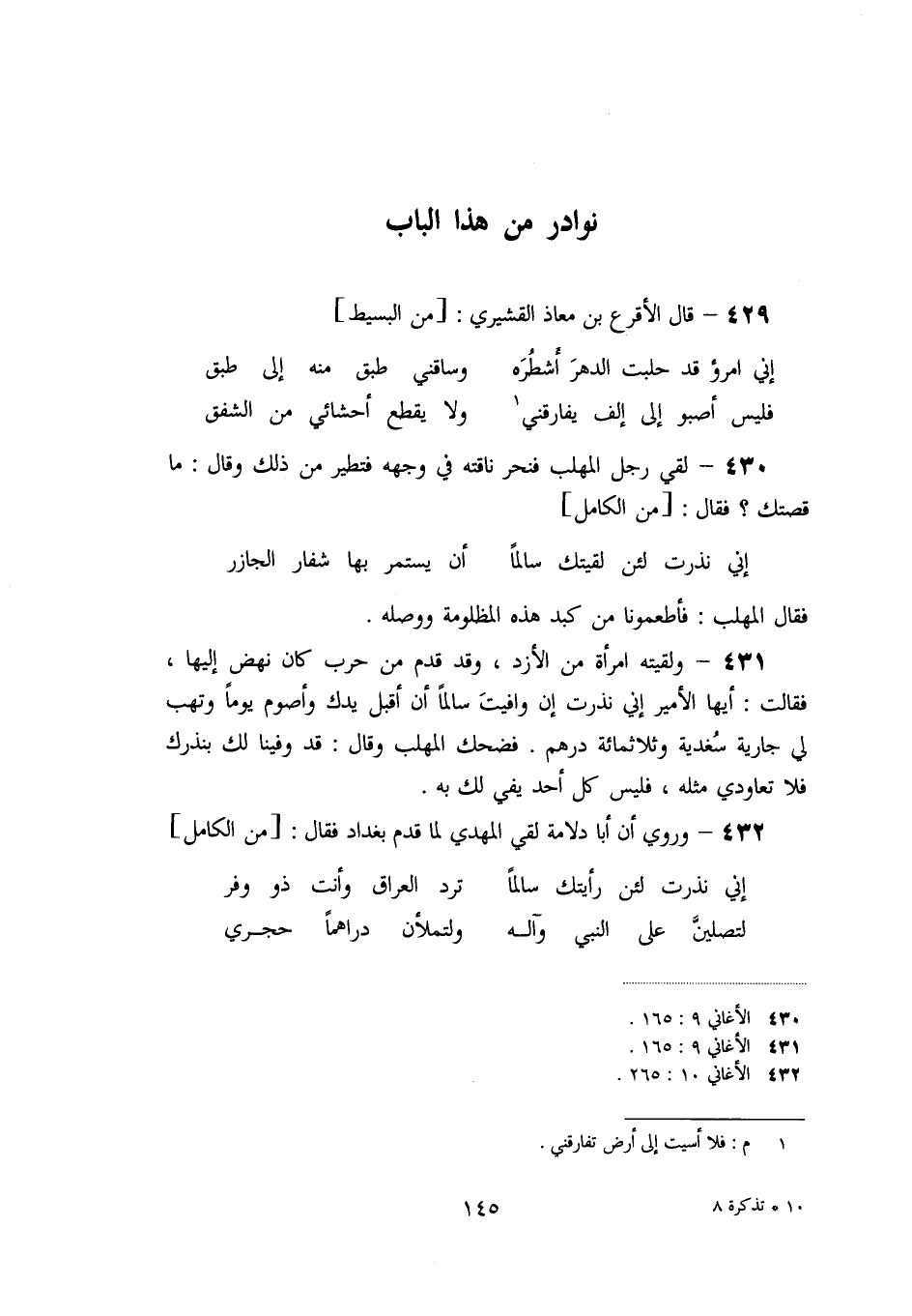 «430» - لقي رجل المهلب فنحر ناقته في وجهه فتطير من ذلك وقال: ما قصتك؟ فقال: [من الكامل]