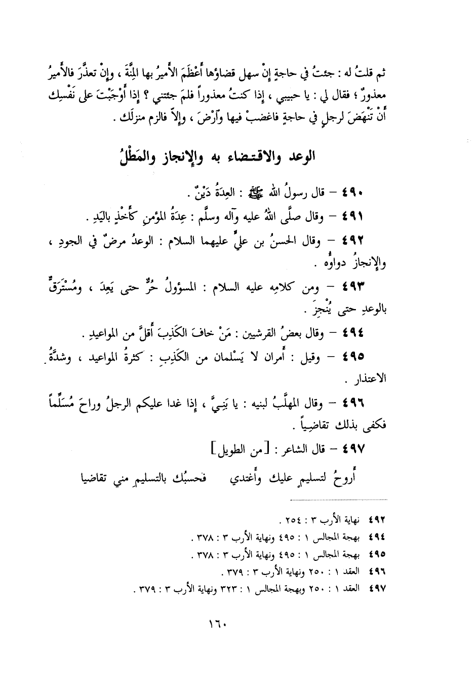 490- قال رسول الله صلّى الله عليه وسلّم: العدة دين.