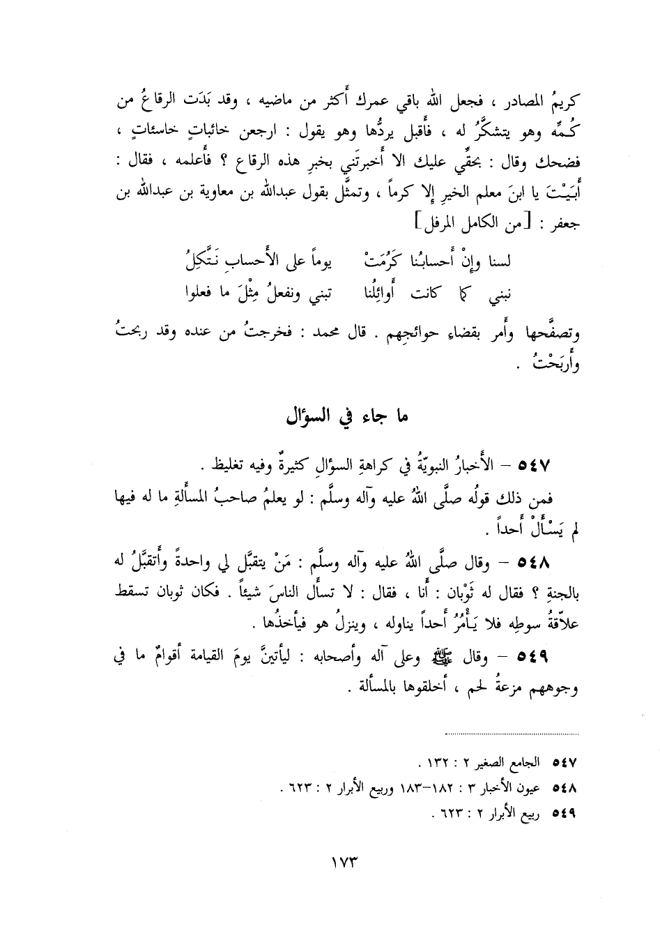 «547» - الأخبار النبويّة في كراهة السؤال كثيرة وفيه تغليظ.