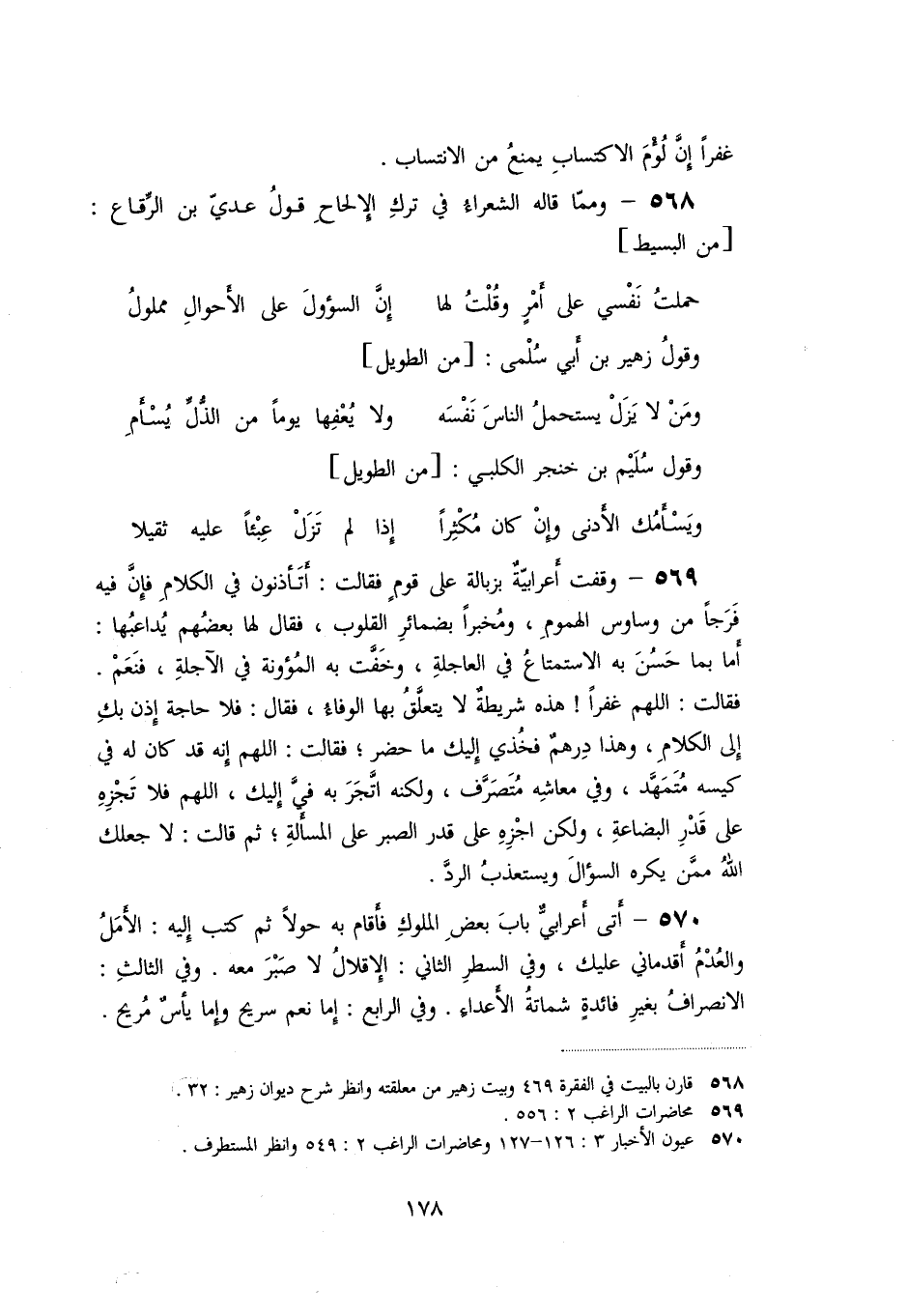 «568» - وممّا قاله الشعراء في ترك الإلحاح قول عديّ بن الرّقاع: