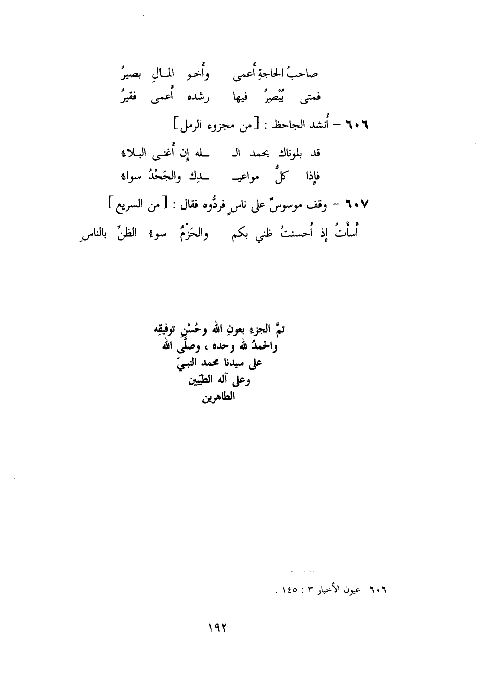 «606» - أنشد الجاحظ: [من مجزوء الرمل]