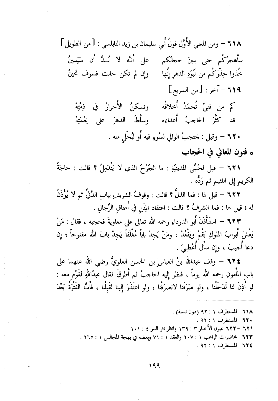 «618» - ومن المعنى الأوّل قول أبي سليمان بن زيد النابلسي: [من الطويل]