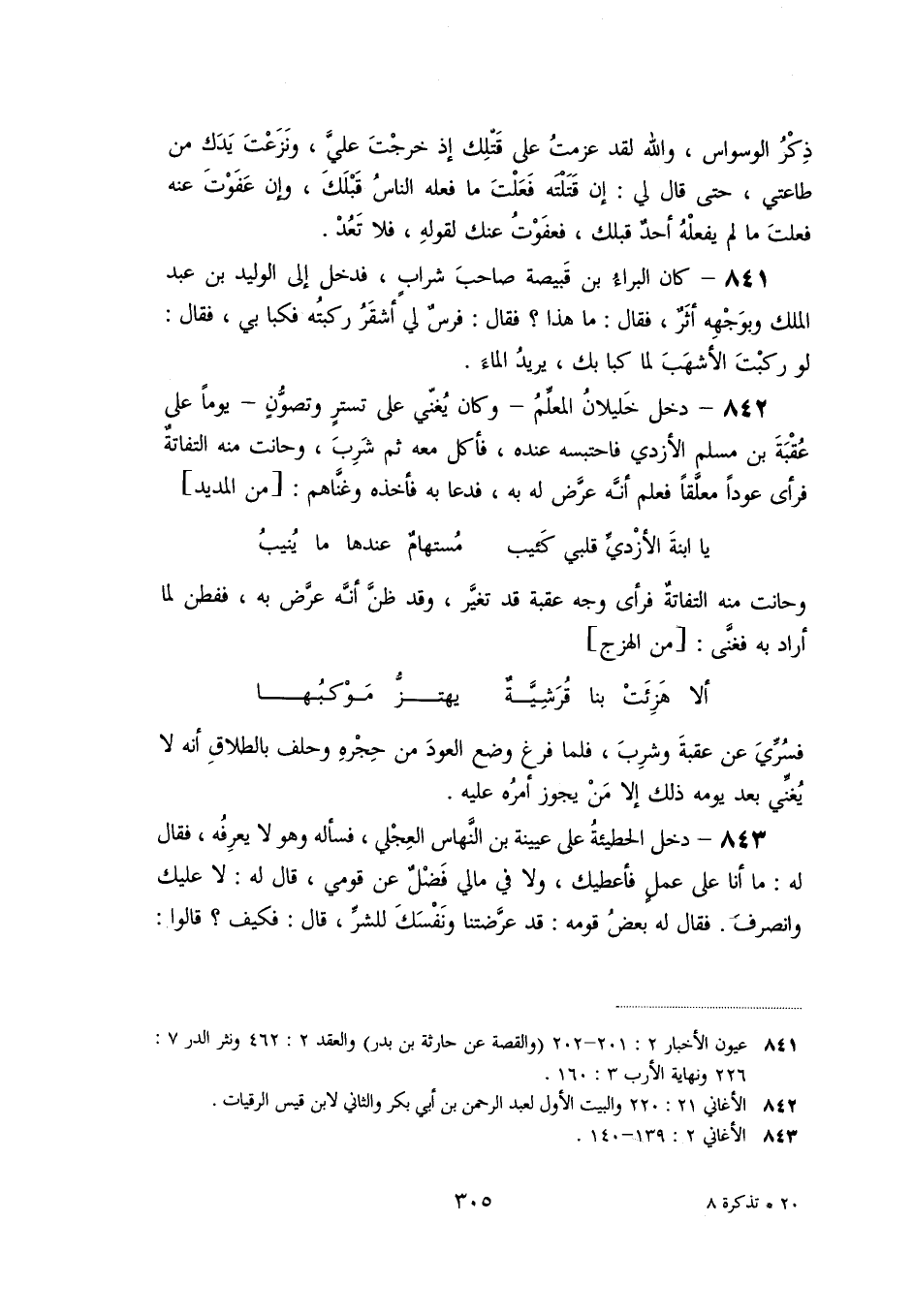 «841» - كان البراء بن قبيصة صاحب شراب، فدخل إلى الوليد بن عبد الملك وبوجهه أثر، فقال: ما هذا؟ فقال: فرس لي أشقر ركبته فكبا بي، فقال: