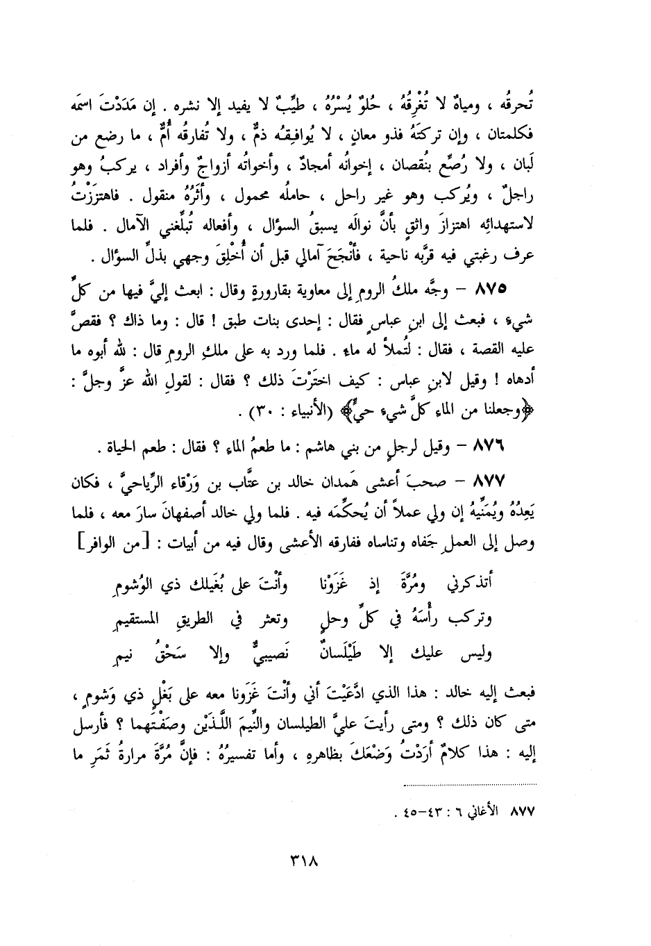 876- وقيل لرجل من بني هاشم: ما طعم الماء؟ فقال: طعم الحياة.