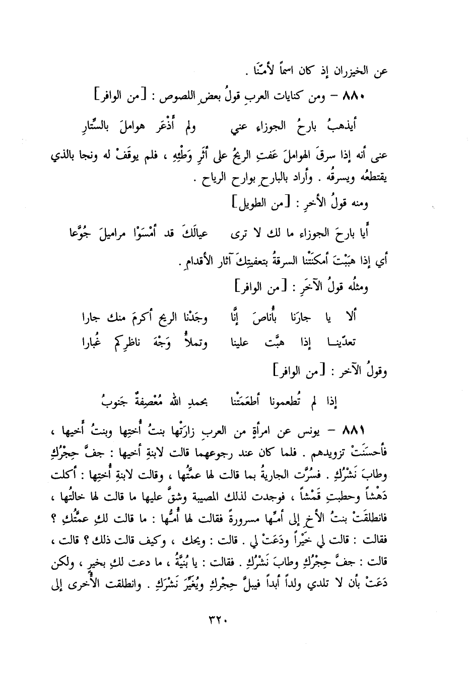 880- ومن كنايات العرب قول بعض اللصوص: [من الوافر]