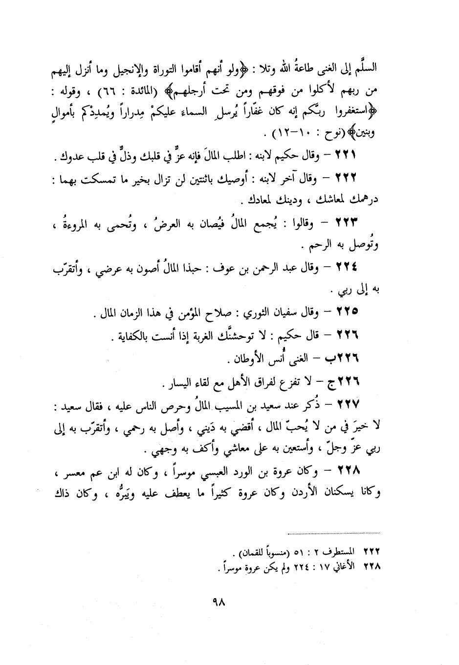 225- وقال سفيان الثوري: صلاح المؤمن في هذا الزمان المال.