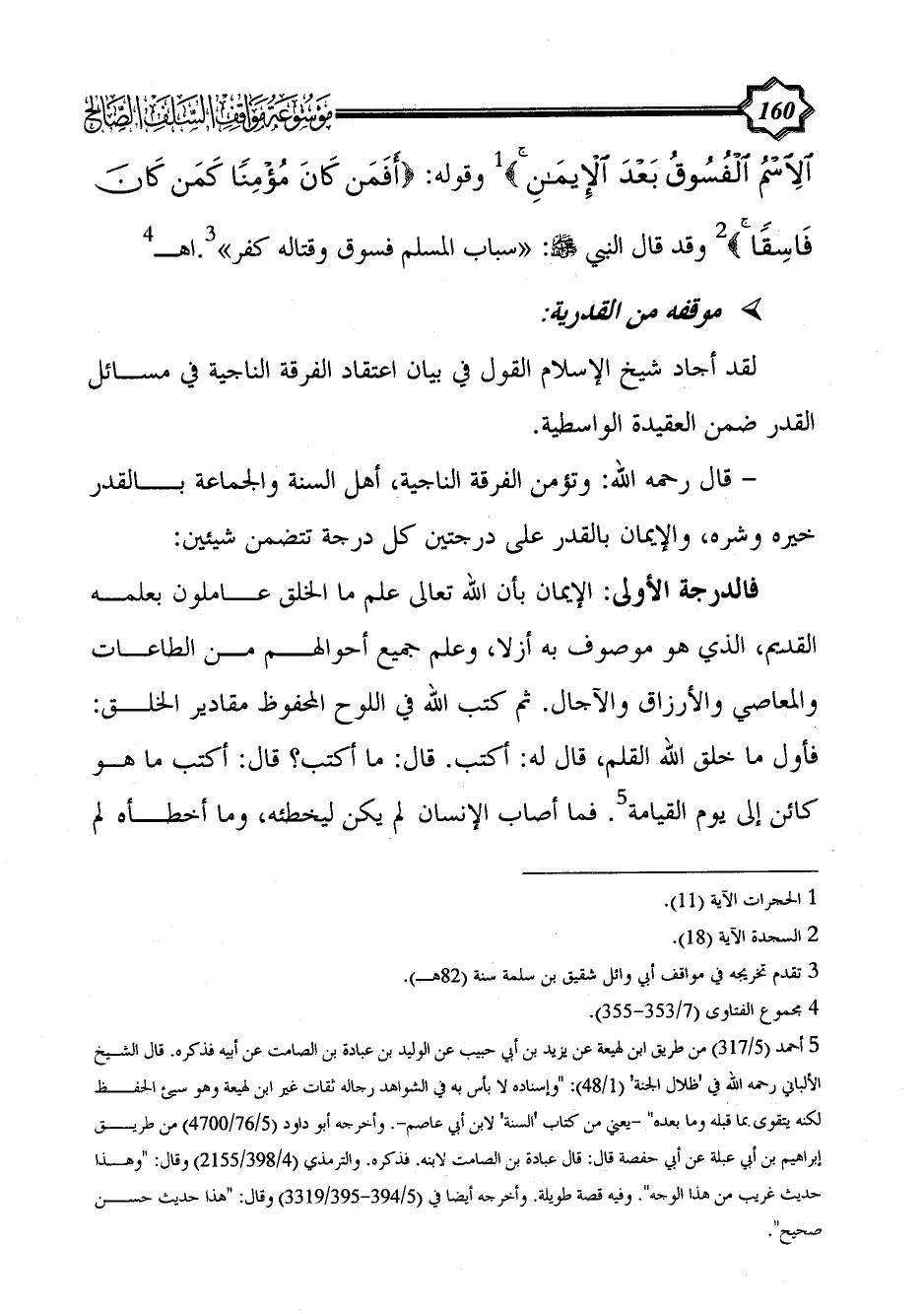 لقد أجاد شيخ الإسلام القول في بيان اعتقاد الفرقة الناجية في مسائل القدر ضمن العقيدة الواسطية.