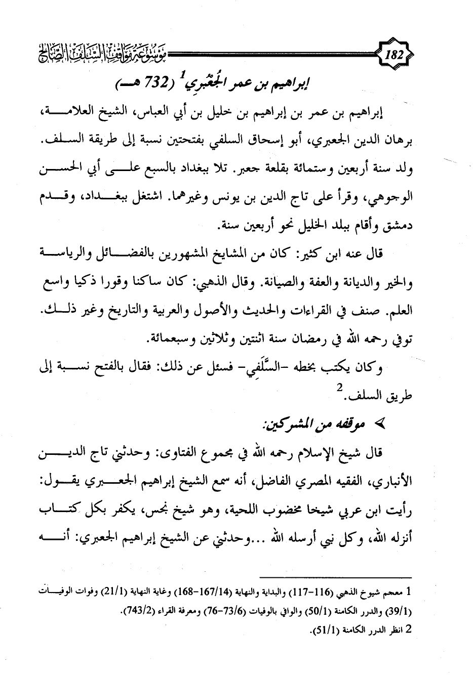 (¬1) معجم شيوخ الذهبي (116 - 117) والبداية والنهاية (14/ 167 - 168) وغاية النهاية (1/ 21) وفوات الوفيات (1/ 39) والدرر الكامنة (1/ 50) والوافي بالوفيات (6/ 73 - 76) ومعرفة القراء (2/ 743).