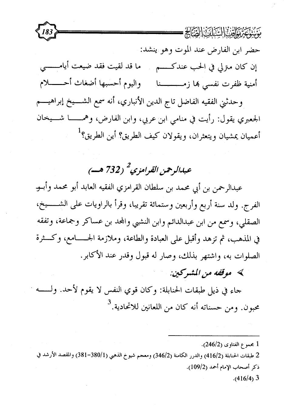 (¬2) طبقات الحنابلة (2/ 416) والدرر الكامنة (2/ 346) ومعجم شيوخ الذهبي (1/ 380 - 381) والمقصد الأرشد في ذكر أصحاب الإمام أحمد (2/ 109).