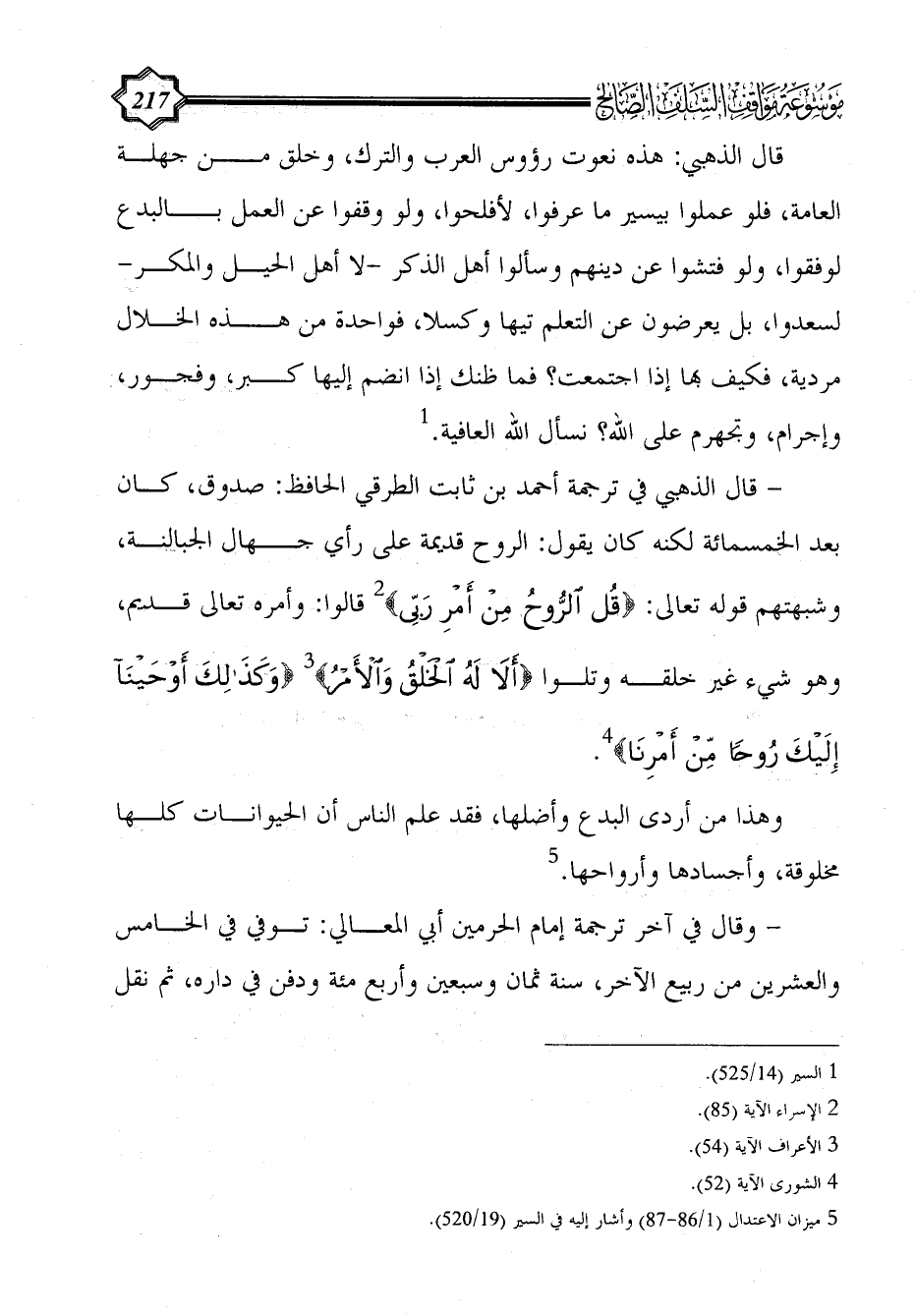 - قال الذهبي في ترجمة أحمد بن ثابت الطرقي الحافظ: صدوق، كان بعد الخمسمائة لكنه كان يقول: الروح قديمة على رأي جهال الجبالنة، وشبهتهم قوله تعالى: {قُلْ الرُّوحُ مِنْ أَمْرِ رَبِّي} (¬2) قالوا: وأمره تعالى قديم، وهو شيء غير خلقه وتلوا {أَلَا لَهُ الْخَلْقُ وَالْأَمْرُ} (¬3) {وَكَذَلِكَ أَوْحَيْنَا إِلَيْكَ رُوحًا مِنْ أَمْرِنَا} (¬4).