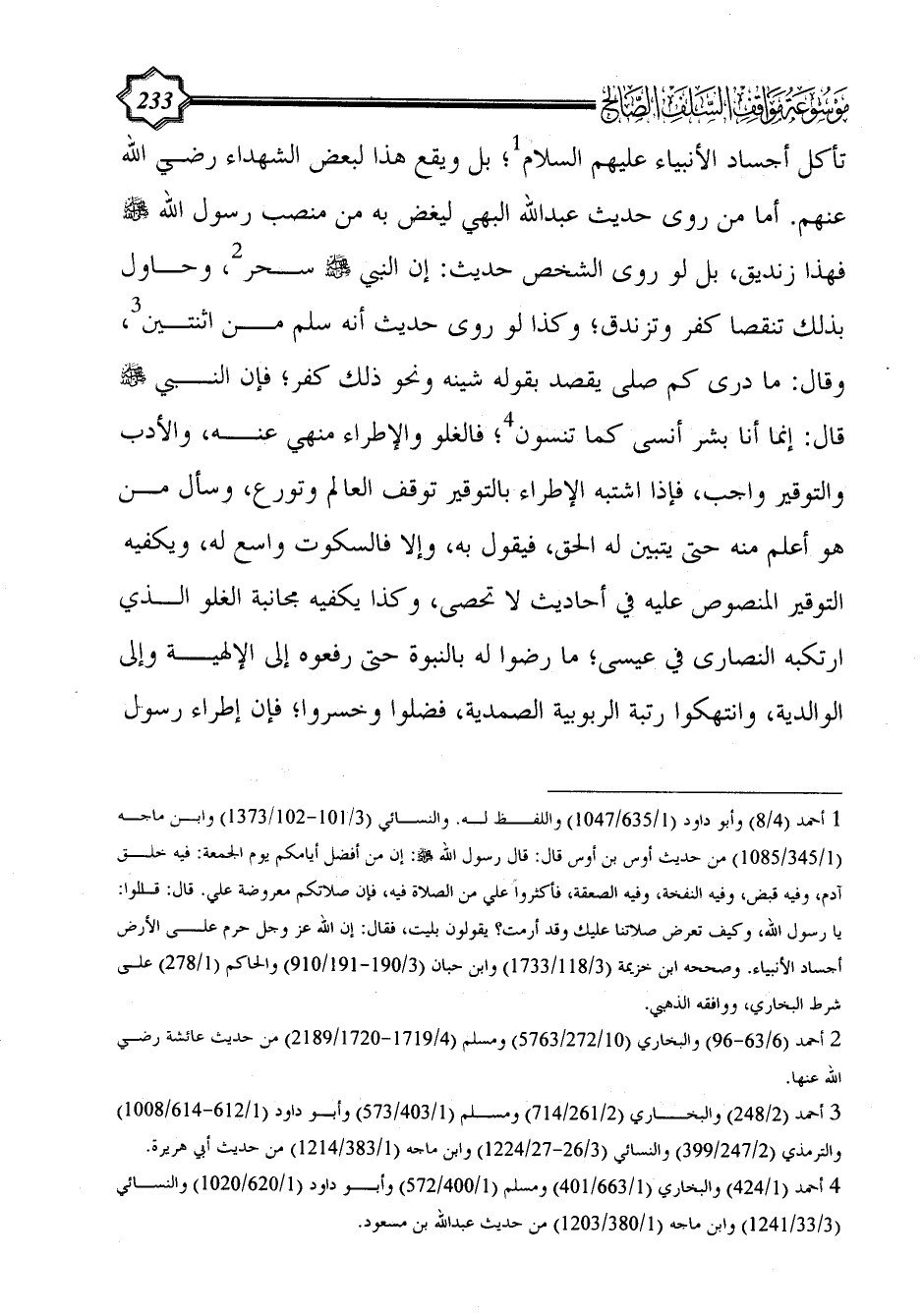تأكل أجساد الأنبياء عليهم السلام (¬1)؛ بل ويقع هذا لبعض الشهداء رضي الله عنهم. أما من روى حديث عبد الله البهي ليغض به من منصب رسول الله - صلى الله عليه وسلم - فهذا زنديق، بل لو روى الشخص حديث: إن النبي - صلى الله عليه وسلم - سحر (¬2)،
