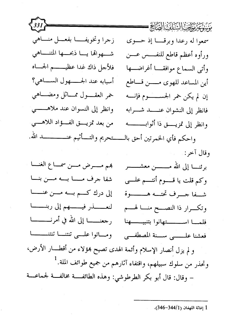 - وقال: قال أبو بكر الطرطوشي: وهذه الطائفة مخالفة لجماعة