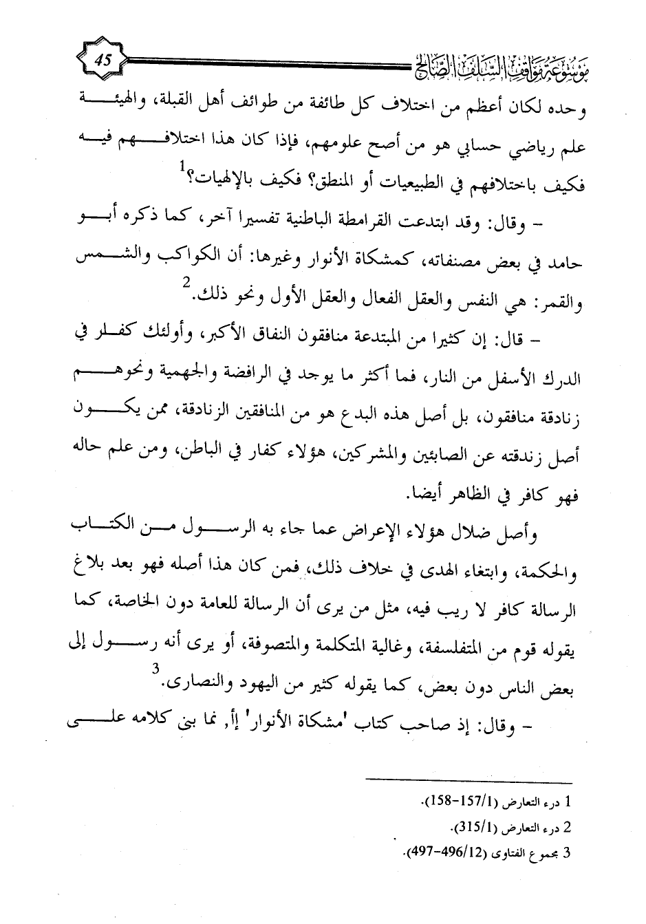 - وقال: إذ صاحب كتاب 'مشكاة الأنوار' إنما بنى كلامه على