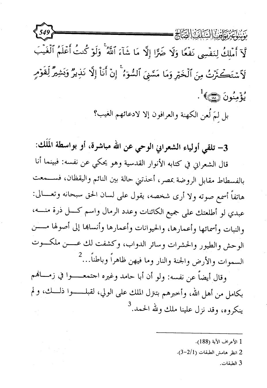 3 - تلقي أولياء الشعراني الوحي عن الله مباشرة، أو بواسطة المَلَك: