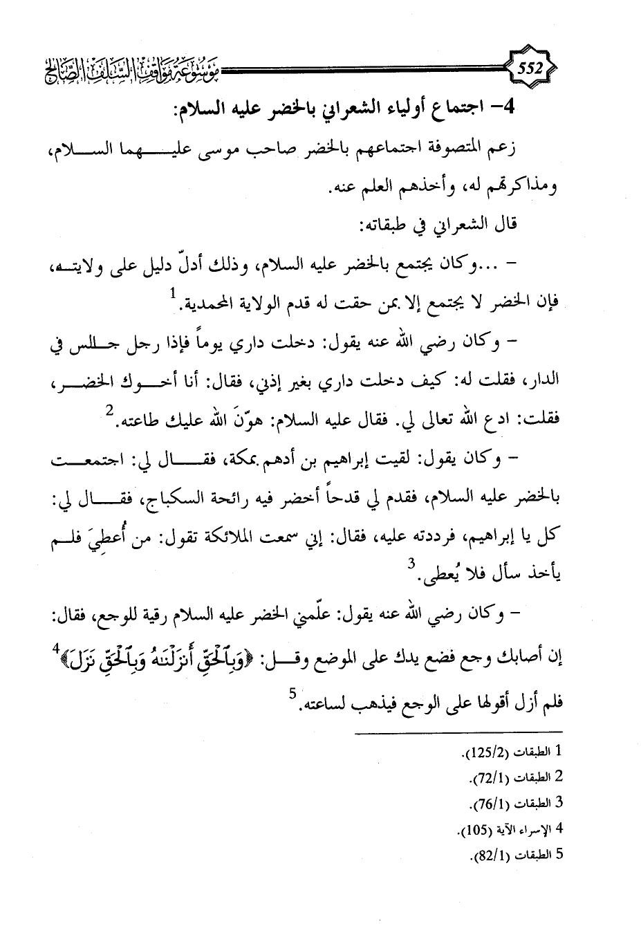 4 - اجتماع أولياء الشعراني بالخضر عليه السلام: